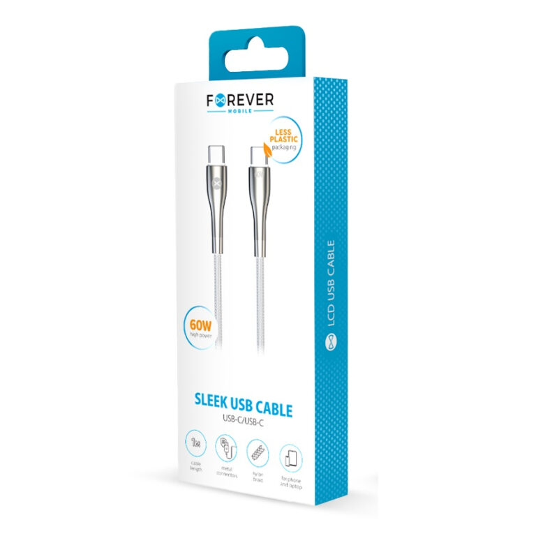 Câble de Charge et Synchro – USB-C vers USB-C – 1m 60W Sleek – Forever