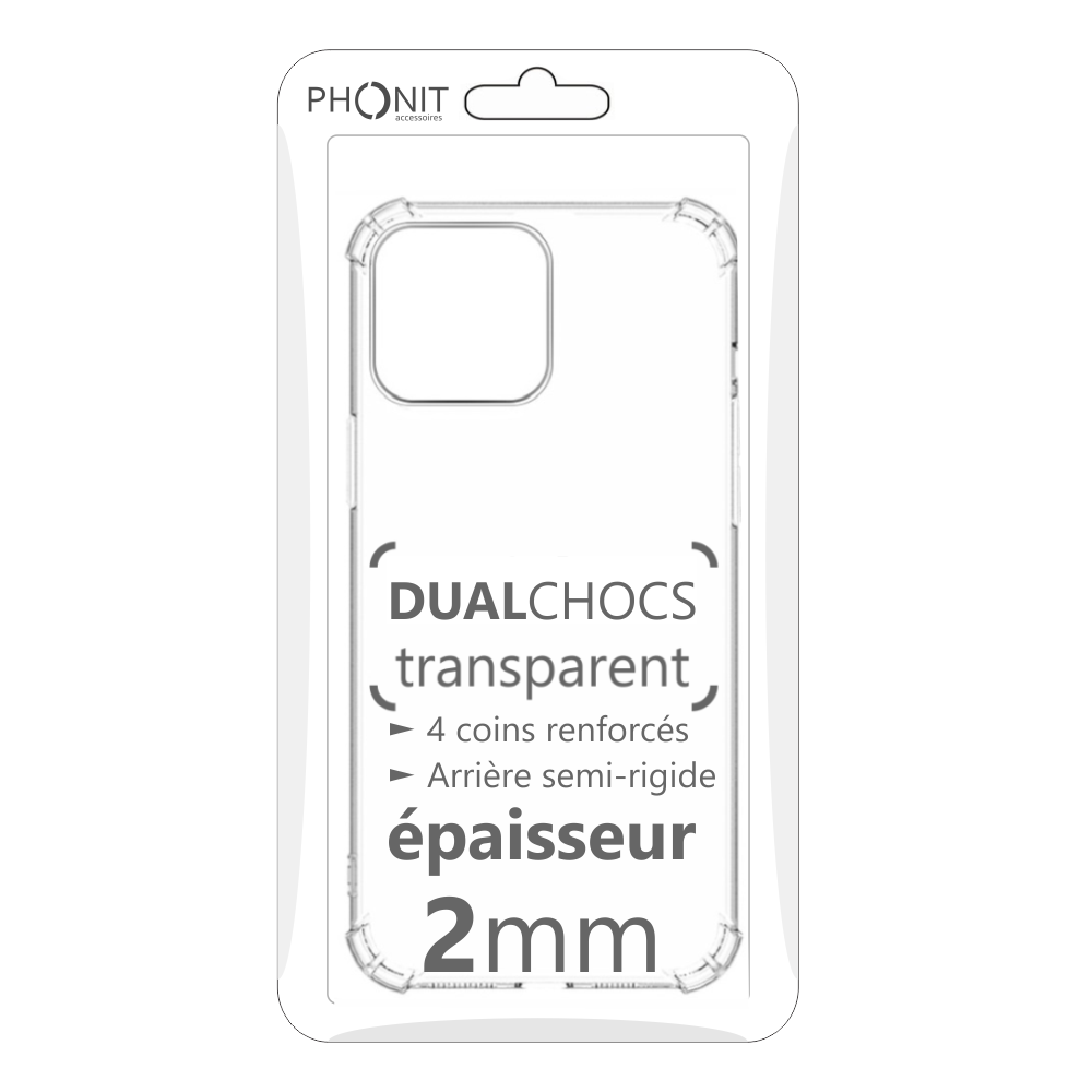 Assurez une double protection à votre smartphone avec la coque Dualchocs transparente PHONIT dont le revêtement résistant protège des chocs ou des rayures.