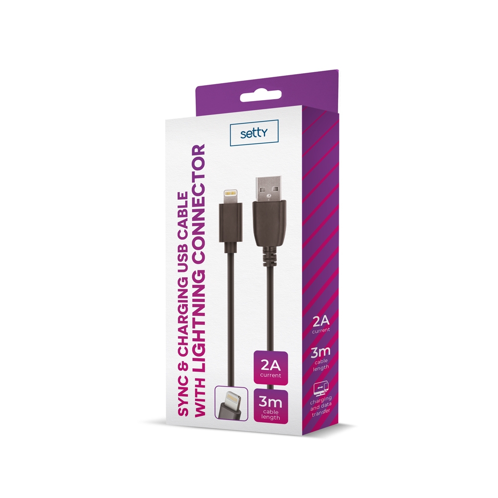 Câble de Charge et Synchro – Lightning – 3 mètres – Noir – Setty
