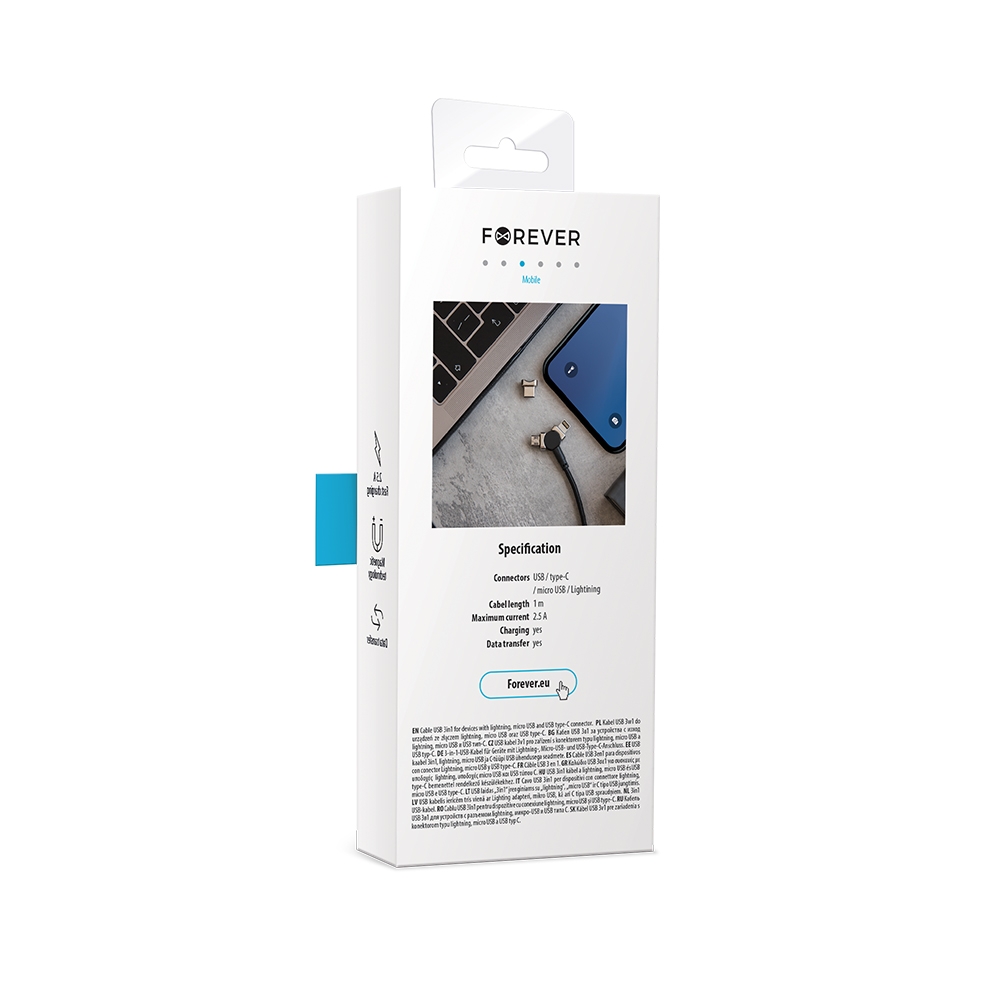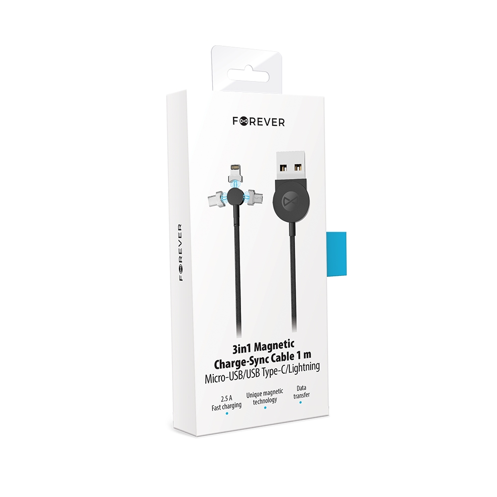 Câble USB de Charge et Synchronisation 3 en 1 avec connecteurs magnétiques de marque Forever
