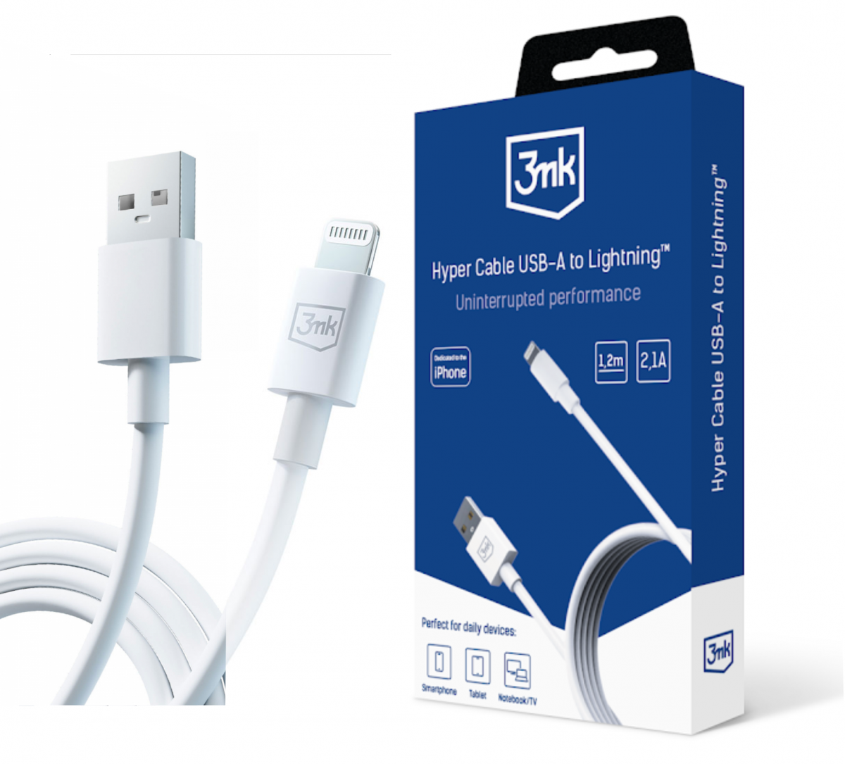 Câble USB/Lightning 2.1A 1.2m – Hyper Cable – 3mk
